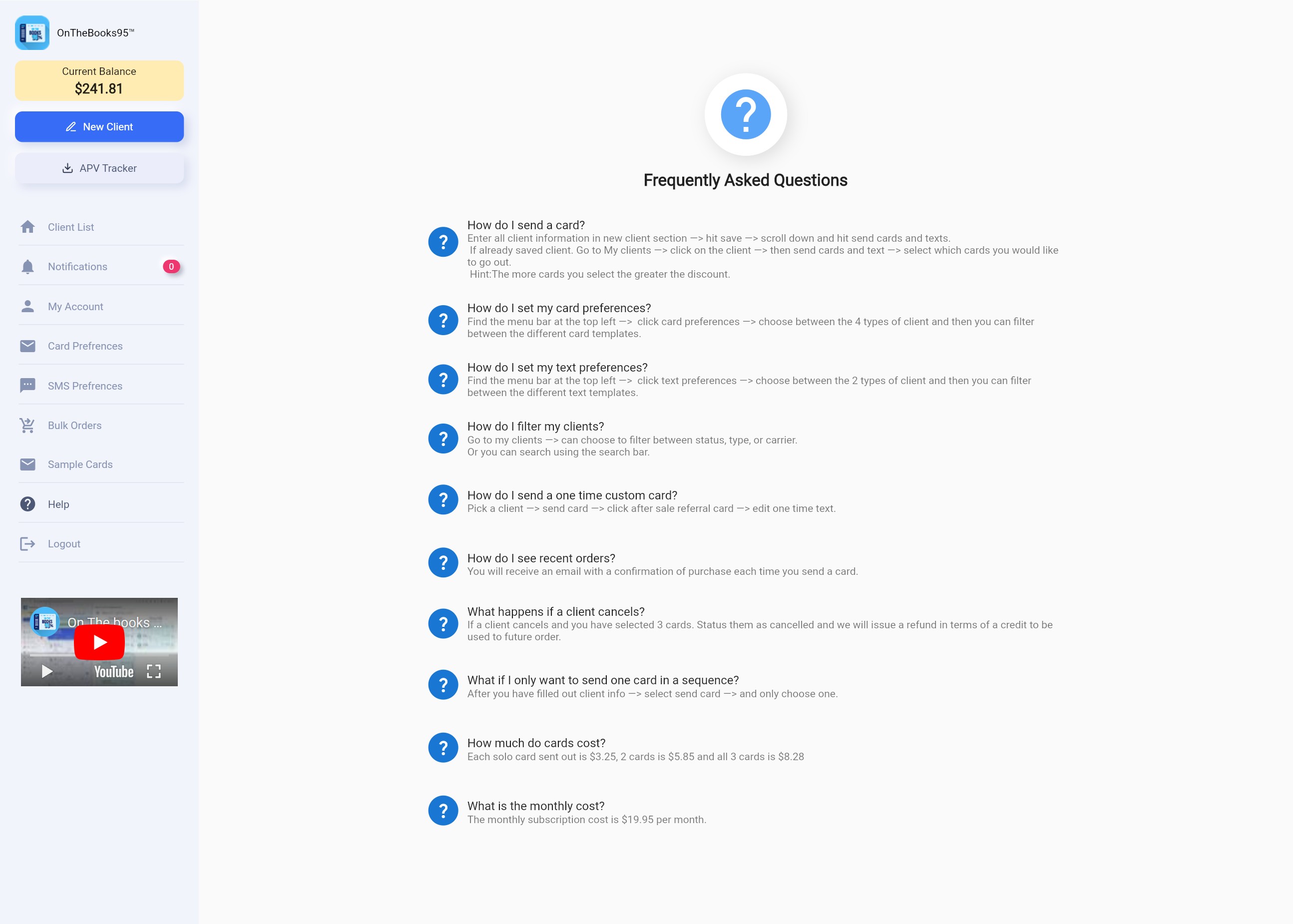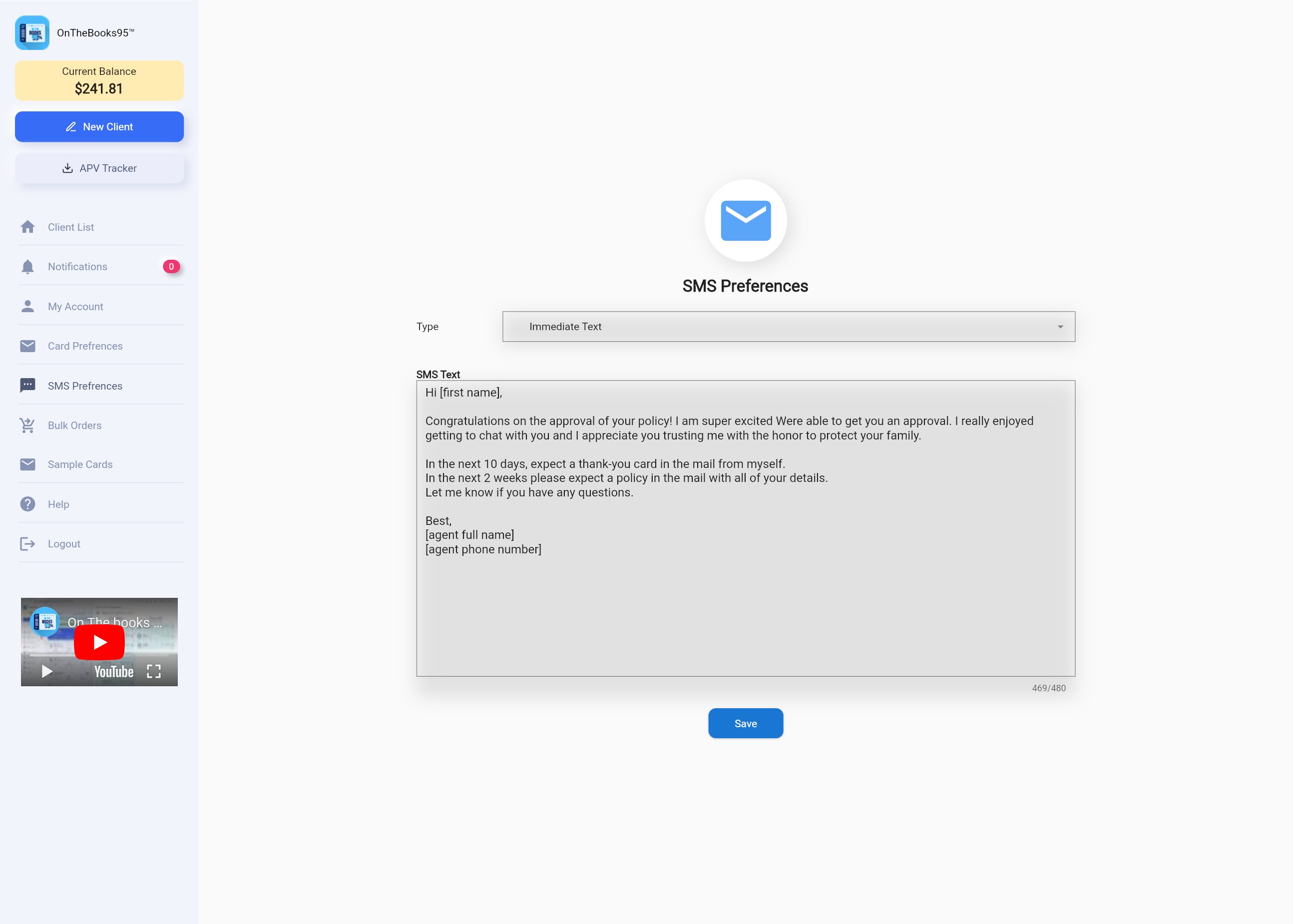 We decided to create a tool for agents to attain the same retention rate. Retain your clients and keep 95% On the Books. If you are a full time agent you will save at least one or two policies a month putting more money in your account, while writing the same amount of business. We hope you enjoy using the app, if you have any questions or would like to share your comments. Please email us at support@onthebooks95.com Sincerely, Matt and Avi